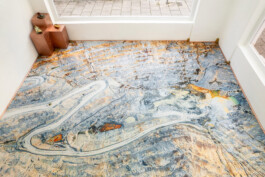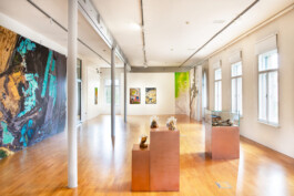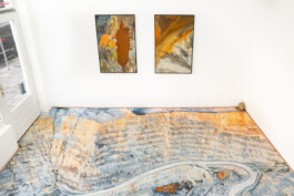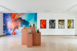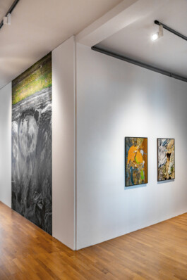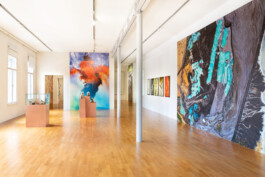 The aesthetic of the works that Sebastian Bühler (*1984) presents in the sixth installment of the exhibition series GROUNDFLOOR PLAYGROUND on the ground floor of the Kunstverein Augsburg is overwhelming. The contrasts of the often luminous colors are striking. The allure of the delicately crafted structures is hard to resist. One loses themselves in them – until it almost becomes overwhelming. For what Bühler lures us with are, upon closer inspection, radiant abstractions of a bitter reality. These are illusions that attract us, only to leave us shattered by what we have ultimately created ourselves: massive destruction of our environment, abandoned debris, and toxic byproducts of industry and energy production that penetrate the earth, water, and air.